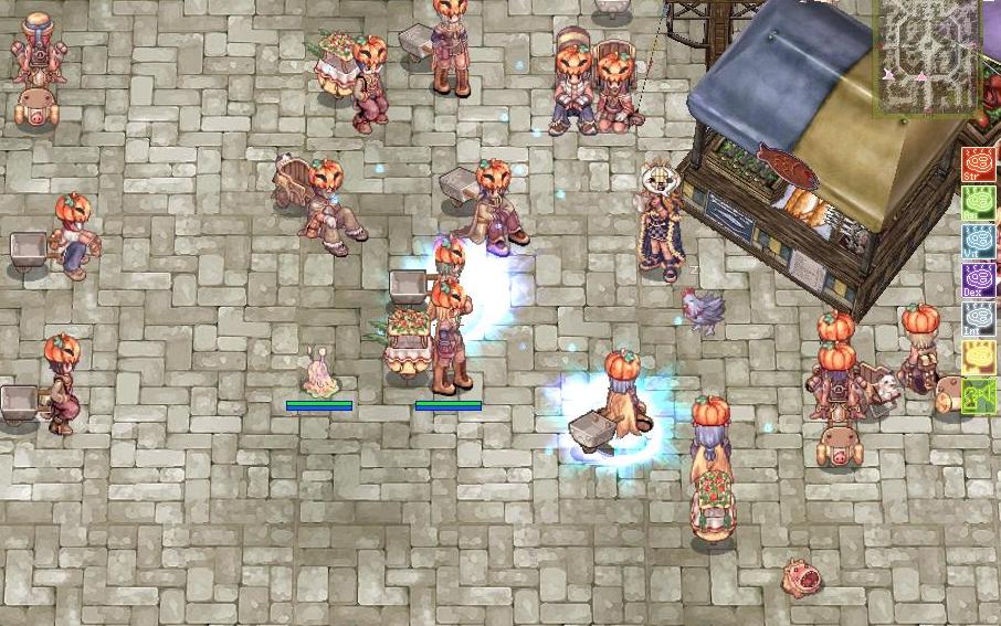 もう終わっちゃいましたが、カボチャパイを作っていたときのSS。かぼちゃを装備するとタマゴの値段が安くなるので、みんなつけてて面白かったので撮りました(・ω・*)