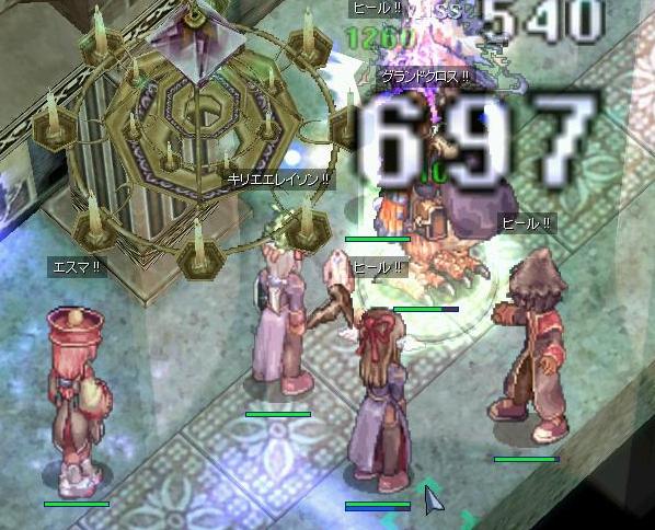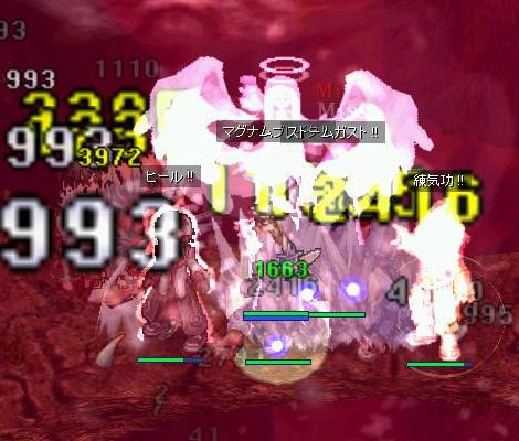 私はプリで支援をしていたのですが、どうも支援がへたくそですねェ・・・。SWおいて、クルセを盾にモンクがハッケイ、WIZがSGだったのですが、ニュマ置くタイミングよりもキエルがSW置くタイミングの方が早くって!!(言い訳です・・・。